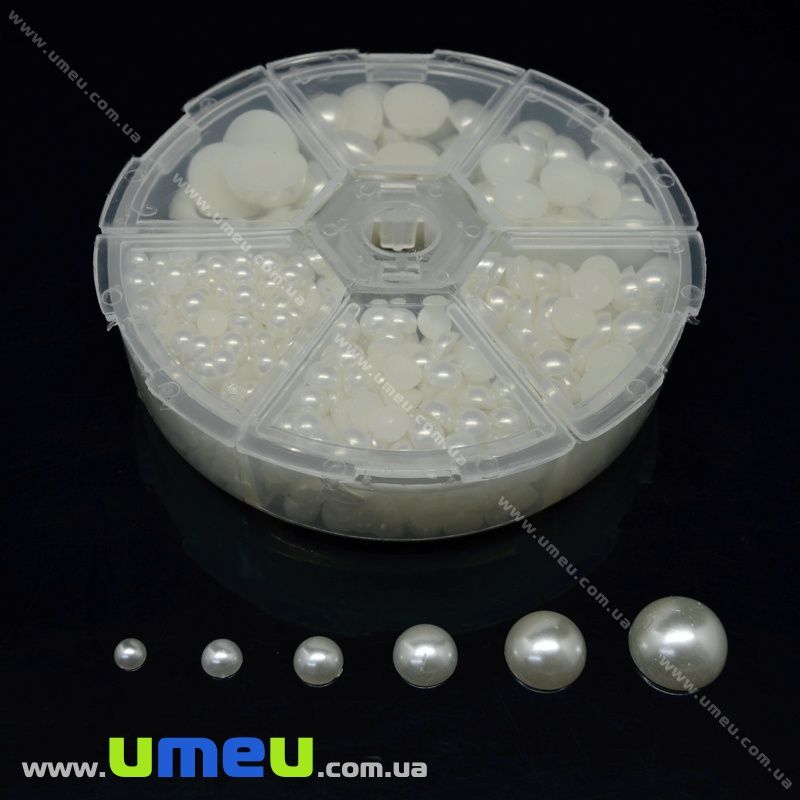 Набір напівнамистин у контейнері, Кремові, Круглі (KAB-022078) / 1 набор