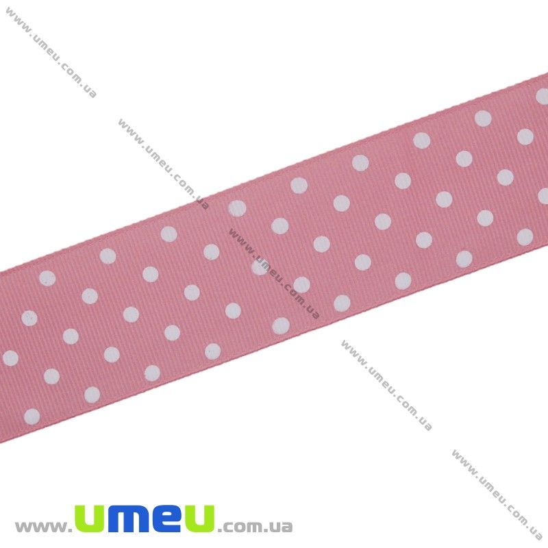 Репсова стрічка в горошок, 40 мм, Рожева (LEN-022466) / 1 м