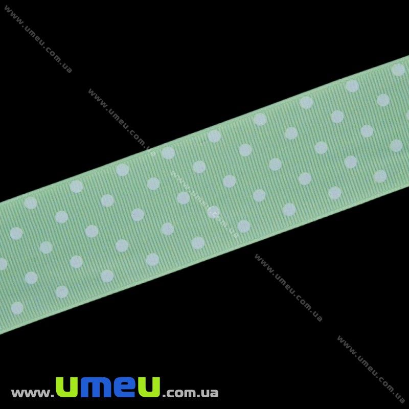 Репсова стрічка в горошок, 40 мм, Салатова (LEN-022474) / 1 м