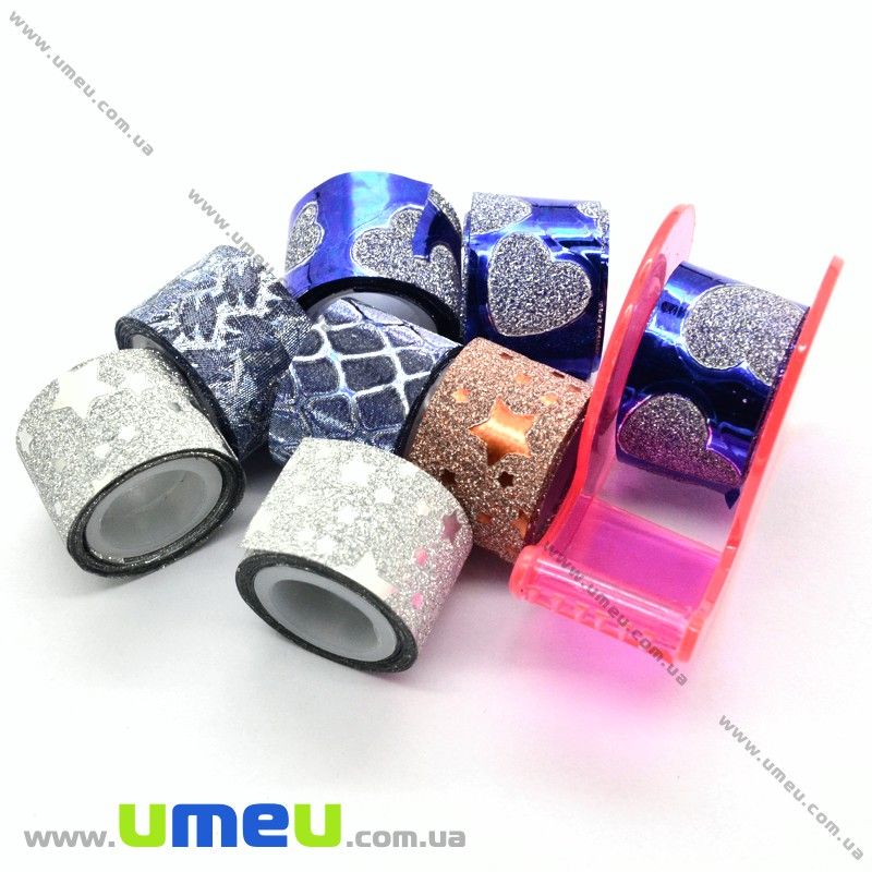 Декоративний скотч гліттерний з дозатором, Мікс, 12 мм (DIF-022530) / 1 уп