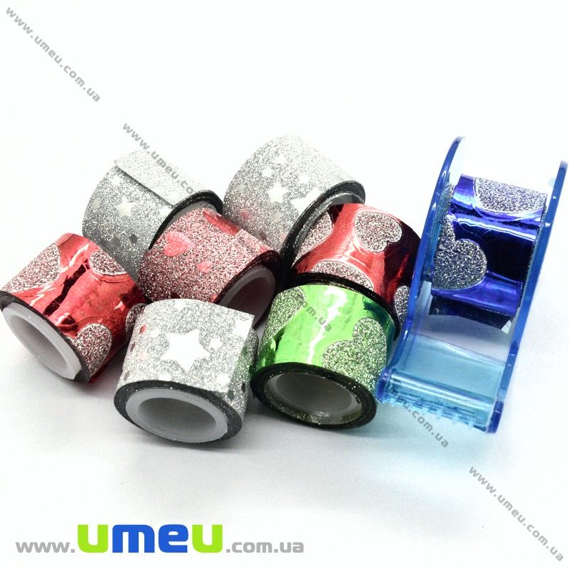 Декоративний скотч гліттерний з дозатором, Мікс, 12 мм (DIF-022556) / 1 уп