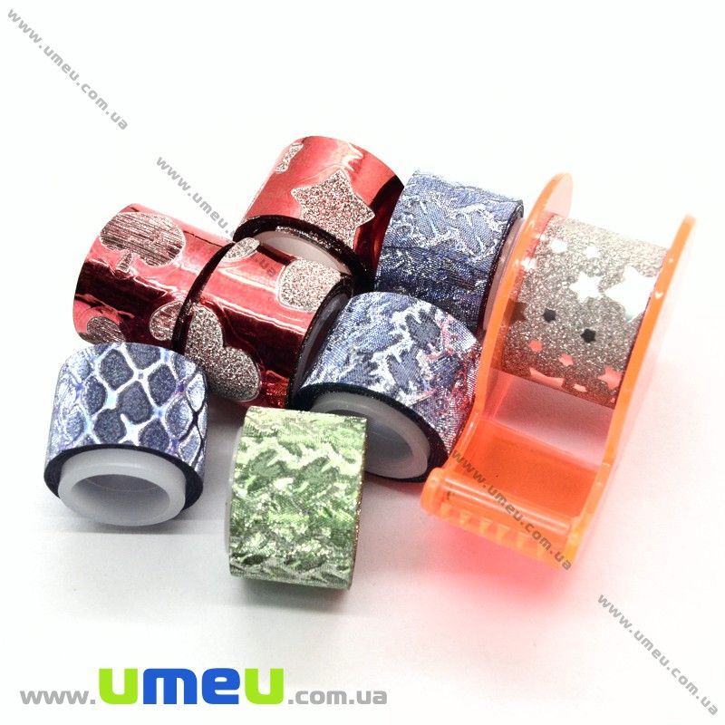 Декоративний скотч гліттерний з дозатором, Мікс, 12 мм (DIF-022558) / 1 уп