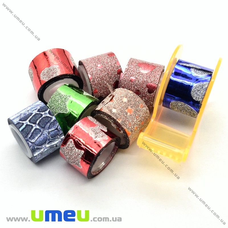 Декоративний скотч гліттерний з дозатором, Мікс, 12 мм (DIF-022559) / 1 уп