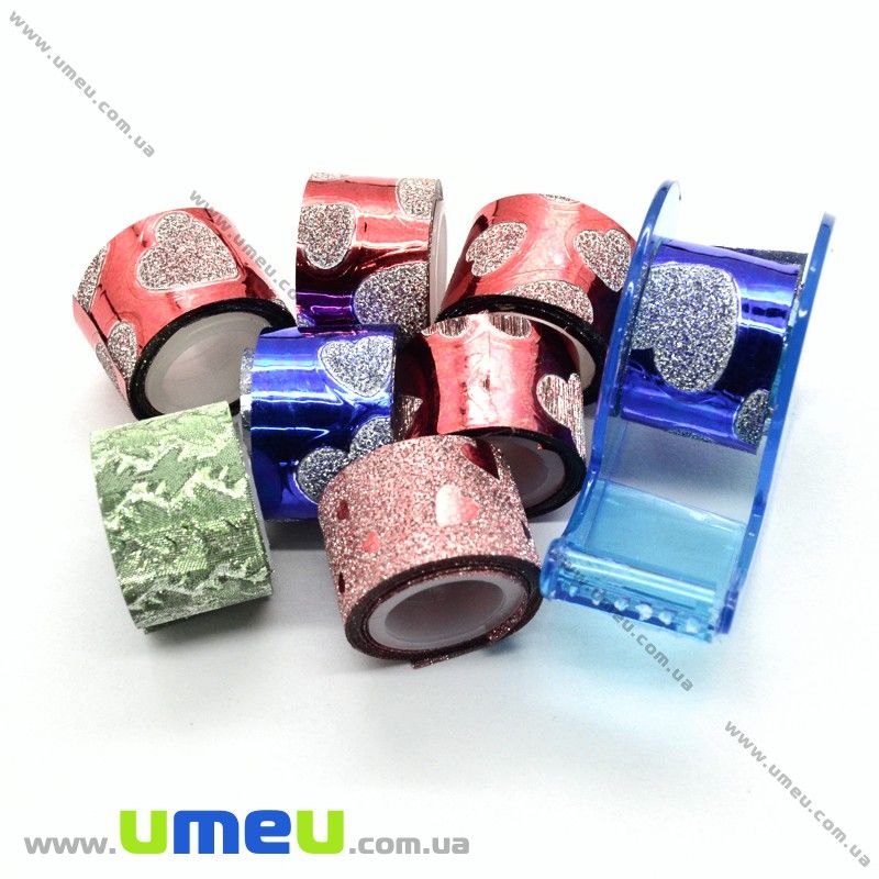 Декоративний скотч гліттерний з дозатором, Мікс, 12 мм (DIF-022564) / 1 уп