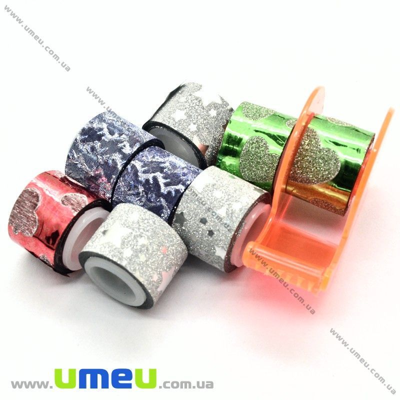 Декоративний скотч гліттерний з дозатором, Мікс, 12 мм (DIF-022573) / 1 уп