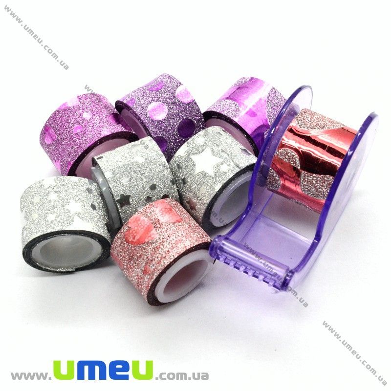 Декоративний скотч гліттерний з дозатором, Мікс, 12 мм (DIF-022576) / 1 уп