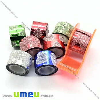 Декоративний скотч гліттерний з дозатором, Мікс, 12 мм (DIF-022577) / 1 уп