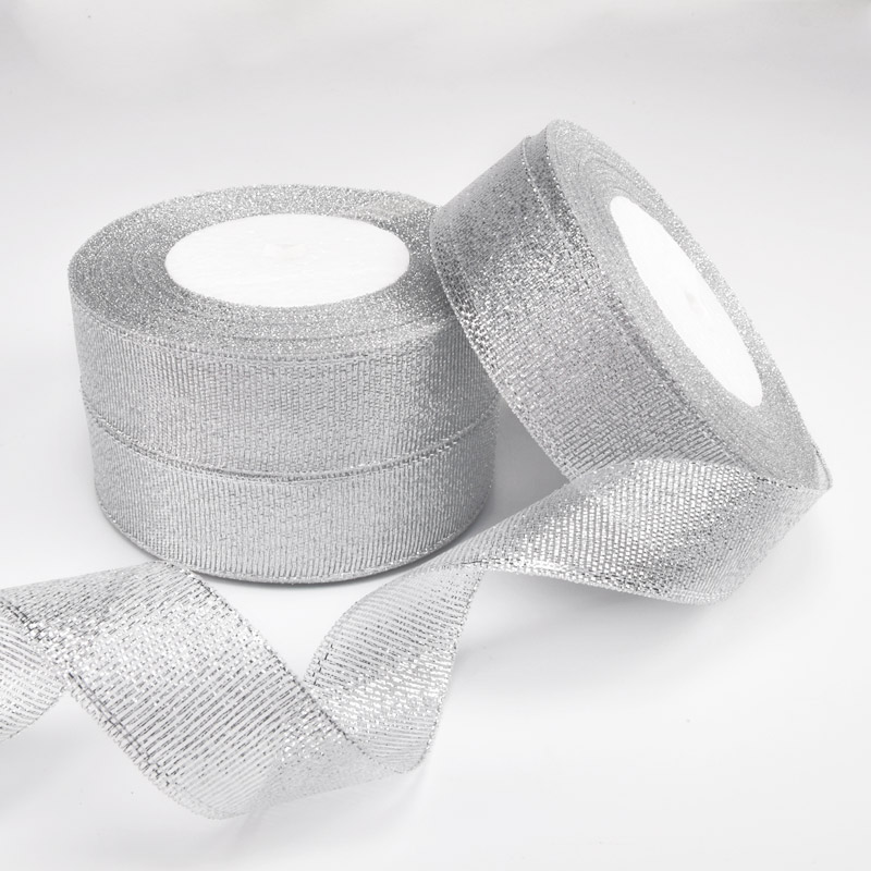 Стрічка парчева, 25 мм, Срібляста (LEN-022603) / 1 моток (22 м)