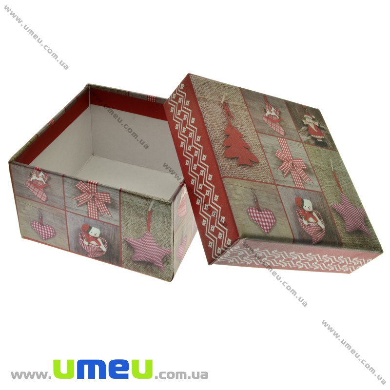 Подарункова коробочка Квадратна новорічна, 9х9х5,5 см, Червона (UPK-023087) /
