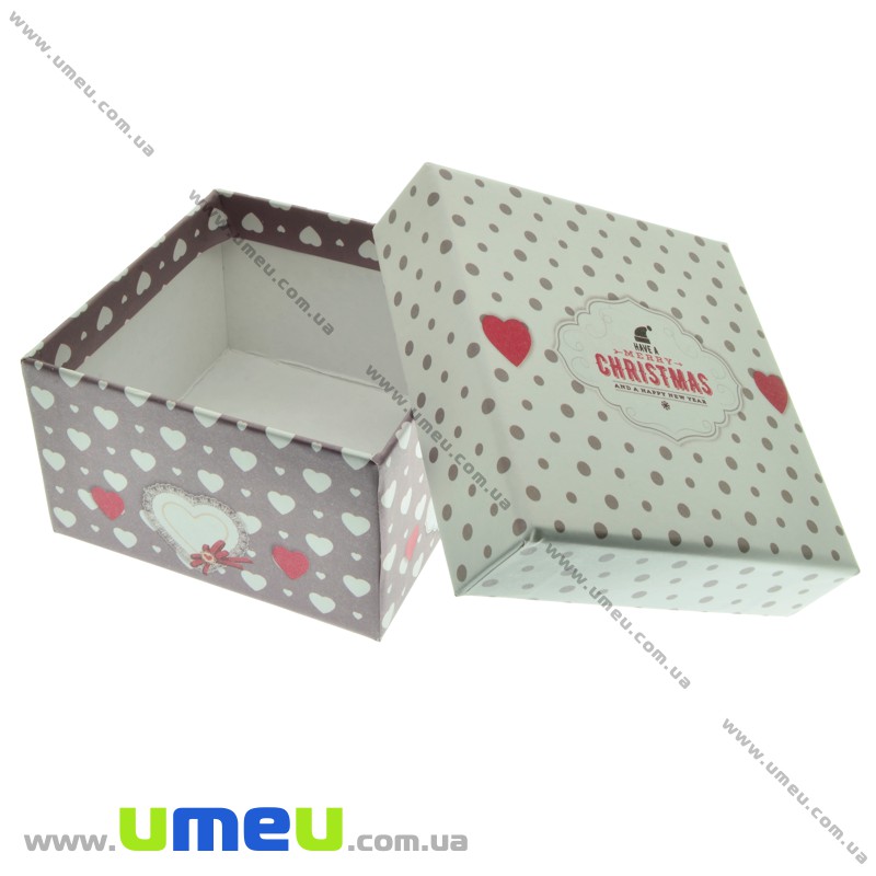 Подарункова коробочка Квадратна новорічна, 9х9х5,5 см, Біла (UPK-023090) /