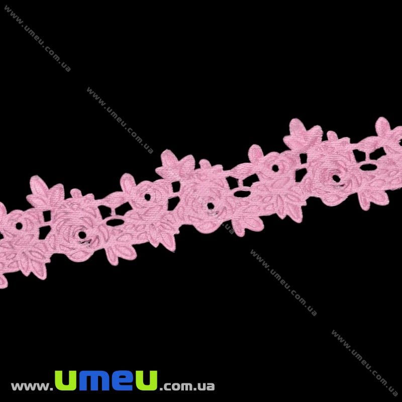 Тасьма тиснена Трояндочки, 20 мм, Рожева (LEN-025671) / 1 м