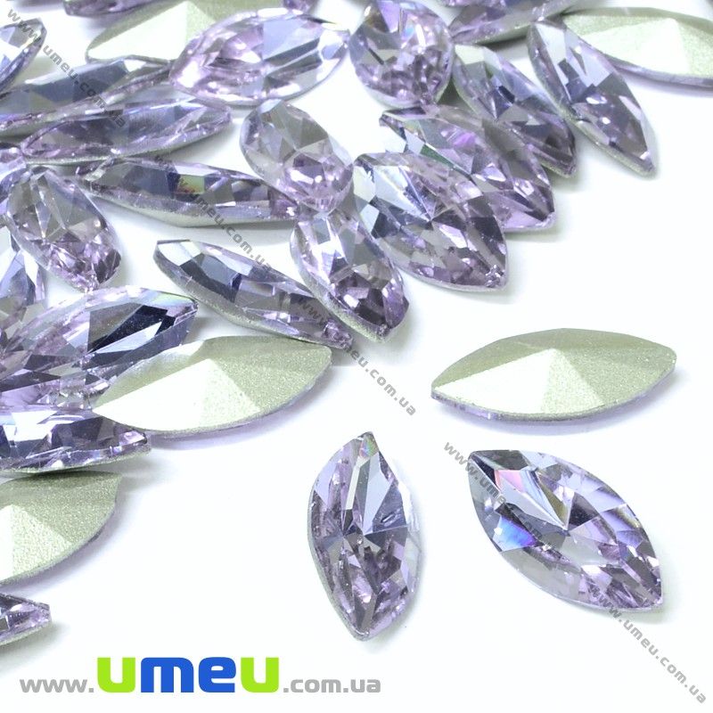 Ріволі скляний, Човник гранований, 15х7 мм, Бузковий (KAB-025831) / 1 шт