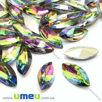 Ріволі скляний, Човник гранований, 15х7 мм, Різнобарвний (KAB-026028) / 1 шт
