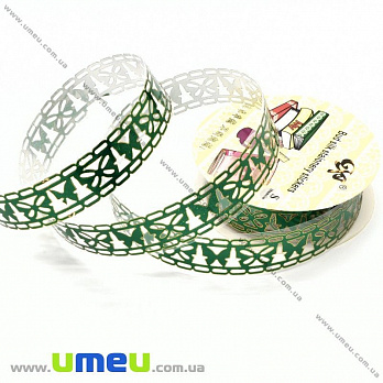 Декоративний скотч мереживний, Зелений, Метелики, 15 мм (DIF-026220) / 1 катушка (1 м)