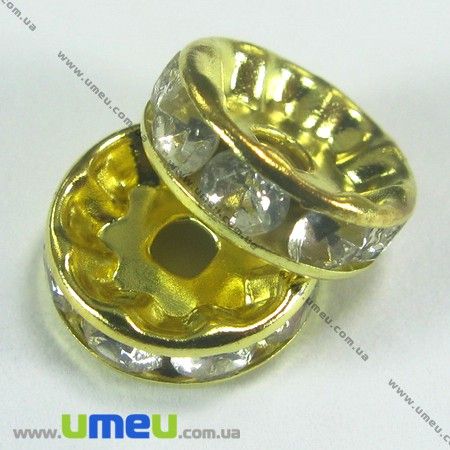 Розділювач 10 мм, Золото, Стрази пластикові білі (OBN-002661) / 1 шт