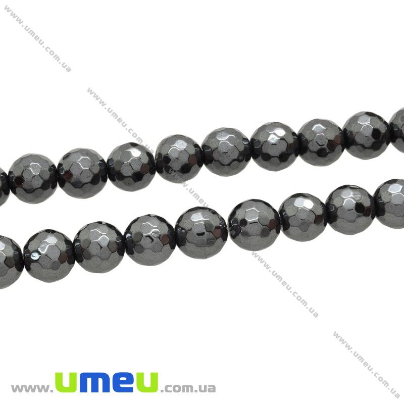 [Архів] Намистина натуральний камінь Гематит, 8 мм, Кругла гранована (BUS-027564) / 1 шт