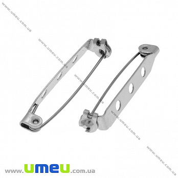 Основа для брошки з нерж. сталі, 33х6 мм, Безпечна застібка, Темне срібло (STL-028373) / 1 шт