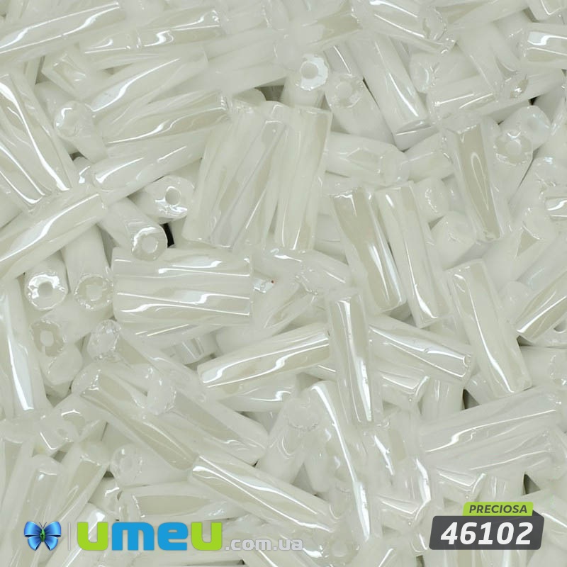 Бісер чеський Стеклярус 3, №46102, Білий перламутровий скручений, 7 мм (BIS-028453) / 1 уп (5 г)