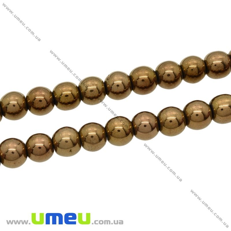 [Архів] Намистина натуральний камінь Гематит пофарбований, 6 мм, Мідна, Кругла (BUS-028605) / 1 шт