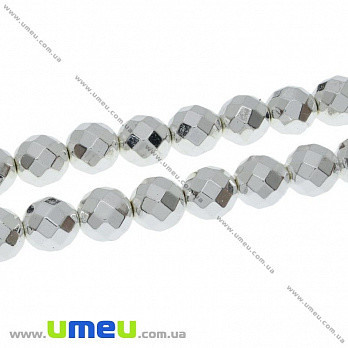 [Архів] Намистина натуральний камінь Гематит пофарбований, 8 мм, Срібляста, Кругла гранована (BUS-028640) / 1 шт