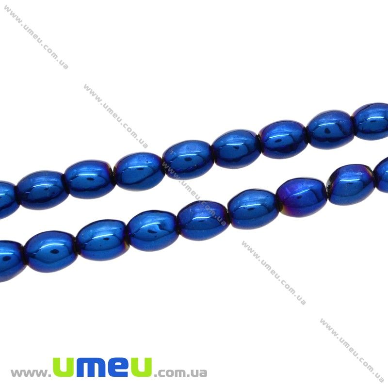 [Архів] Намистина натуральний камінь Гематит пофарбований, 8х6 мм, Синя, Рис (BUS-028654) / 1 шт