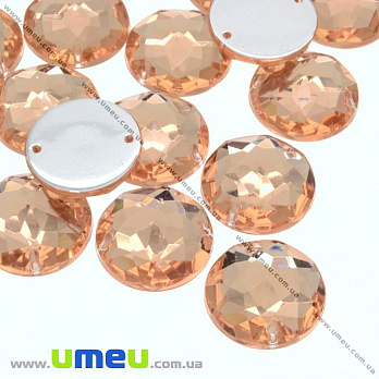 Пришивний кристал пласт. Круглий гранований, 10 мм, Персиковий (KAB-030561) / 1 шт