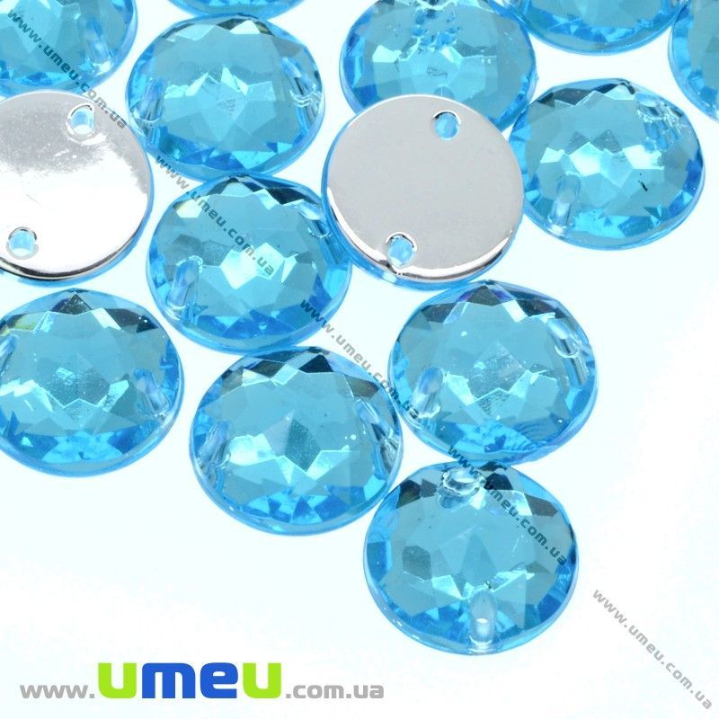 Пришивний кристал пласт. Круглий гранований, 15 мм, Блакитний (KAB-030562) / 1 шт