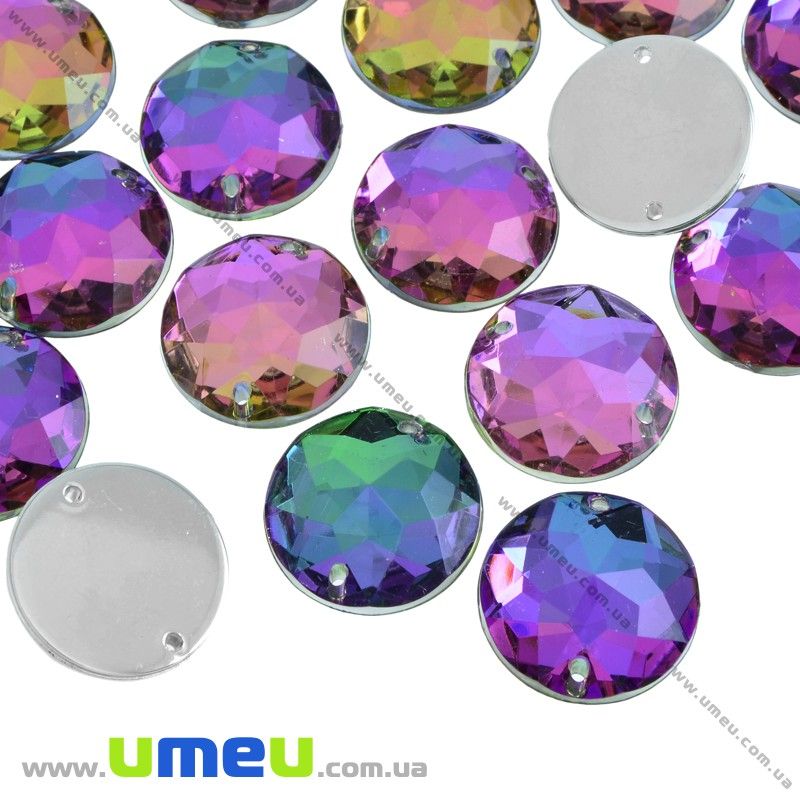 Пришивний кристал пласт. Круглий гранований, 10 мм, Різнобарвний (KAB-030573) / 1 шт