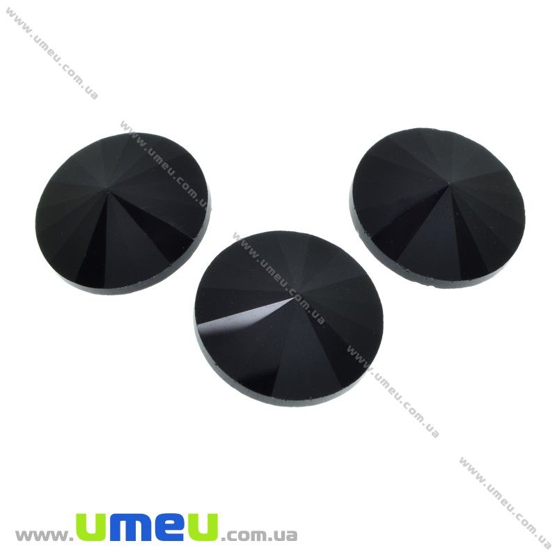 Ріволі скляний, Круглий гранований, 14 мм, Чорний (KAB-031373) / 1 шт