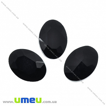 Ріволі скляний, Овал гранований, 18х13 мм, Чорний (KAB-031382) / 1 шт