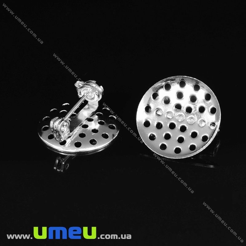 [Архів] Основа для брошки з ситечком, 16 мм, Світле срібло (OSN-031774) / 1 шт