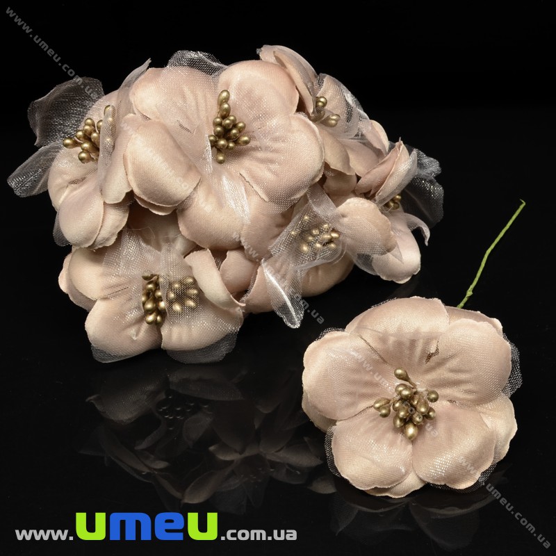 Квітка тканинна з фатином, 55 мм, Бежевий (DIF-033200) / 1 шт