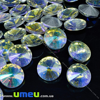 Ріволі скляний, Круглий гранований, Райдужний, 10 мм, Бузковий АВ (KAB-033894) / 1 шт