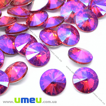 Ріволі скляний, Круглий гранований, Райдужний, 12 мм, Малиновий АВ (KAB-033899) / 1 шт