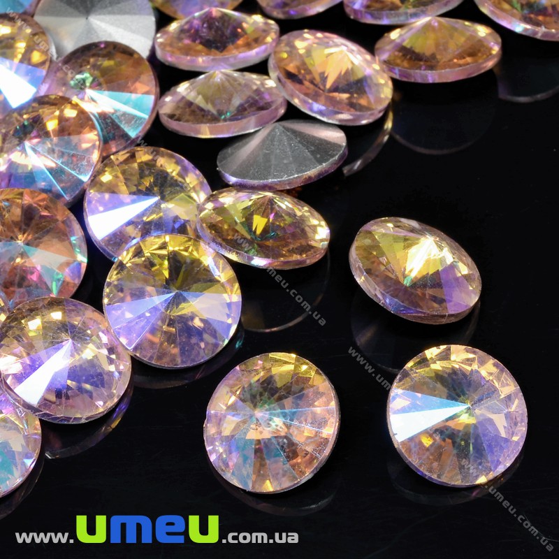 Ріволі скляний, Круглий гранований, Райдужний, 12 мм, Рожевий світлий АВ (KAB-033902) / 1 шт