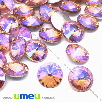 Ріволі скляний, Круглий гранований, Райдужний, 14 мм, Рожевий АВ (KAB-033910) / 1 шт