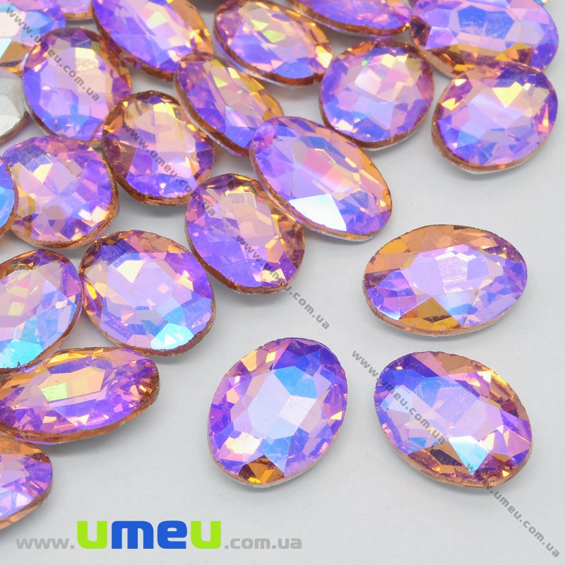 Ріволі скляний, Овал гранований, Райдужний, 18х13 мм, Рожевий АВ (KAB-033996) / 1 шт