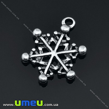 Підвіска метал. Сніжинка, 20х15 мм, Античне срібло (POD-003472) / 1 шт