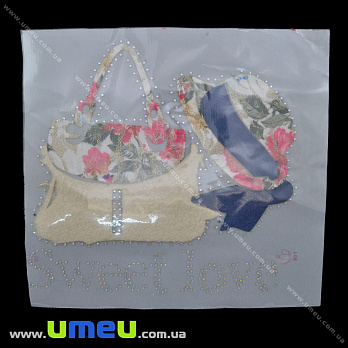 Термоаплікація зі стразами Дамська сумочка, 24х23 см (APL-035259) / 1 шт