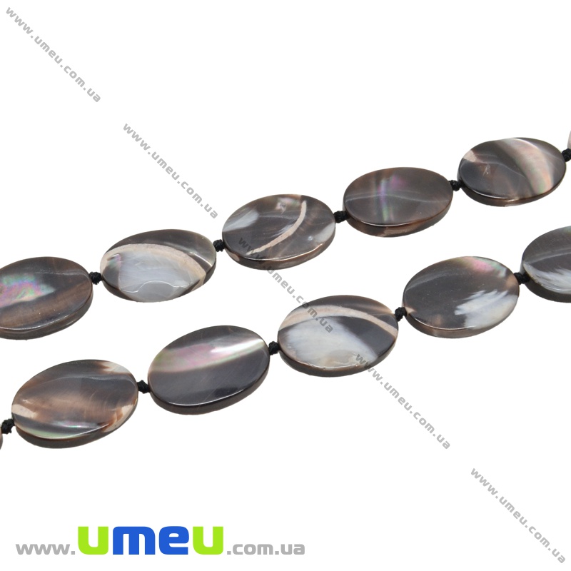 [Архів] Намистина натуральний камінь Перламутр чорний, 18х13 мм, Овальний плоска (BUS-035446) / 1 шт