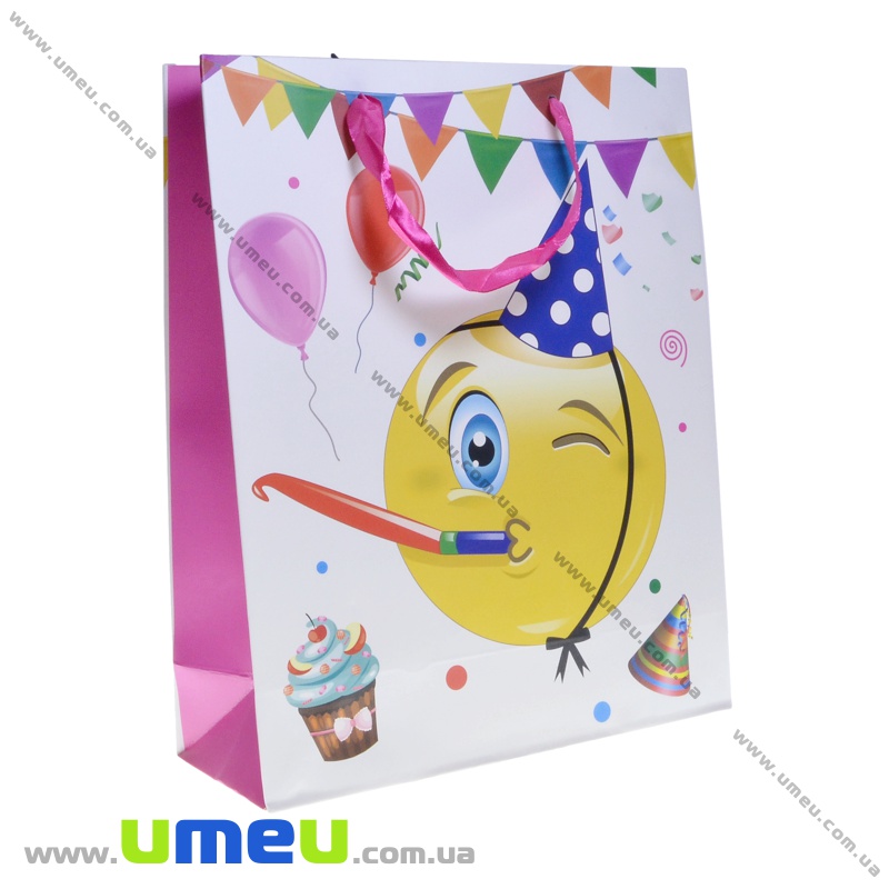 Подарунковий пакет Смайлик, 32х26х10 см, Малиновий (UPK-035643) / 1 шт