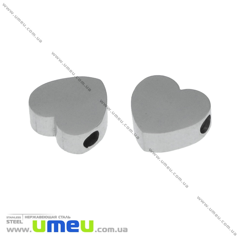 Намистина з нержавіючої сталі Серце, 8х7,5 мм, Темне срібло (STL-036520) / 1 шт