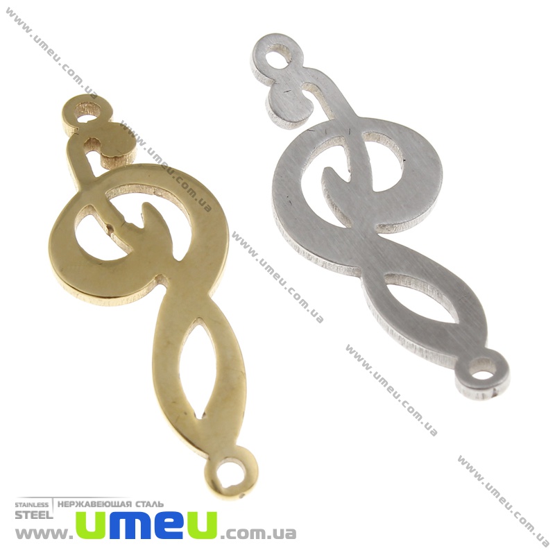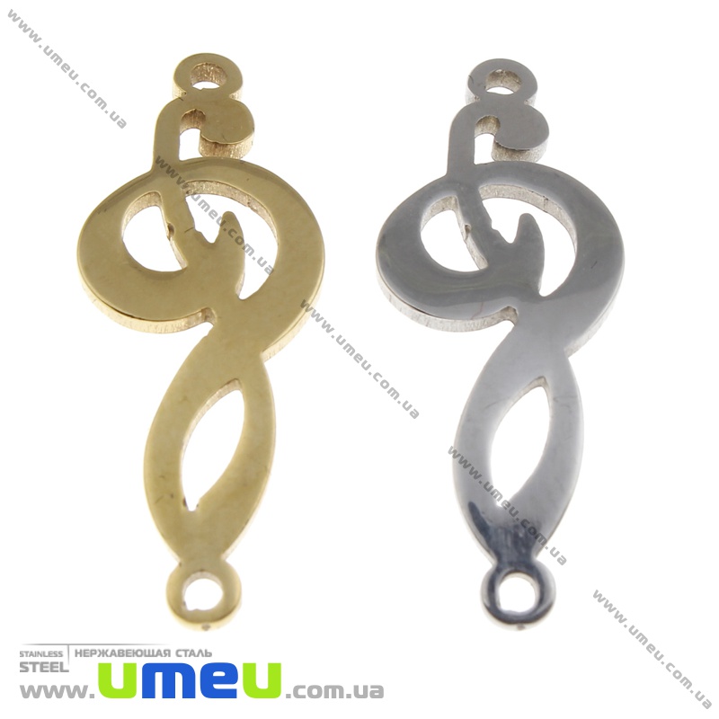 Конектор з нерж. сталі Скрипковий ключ, 25х10 мм, Темне срібло (STL-036535) / 1 шт