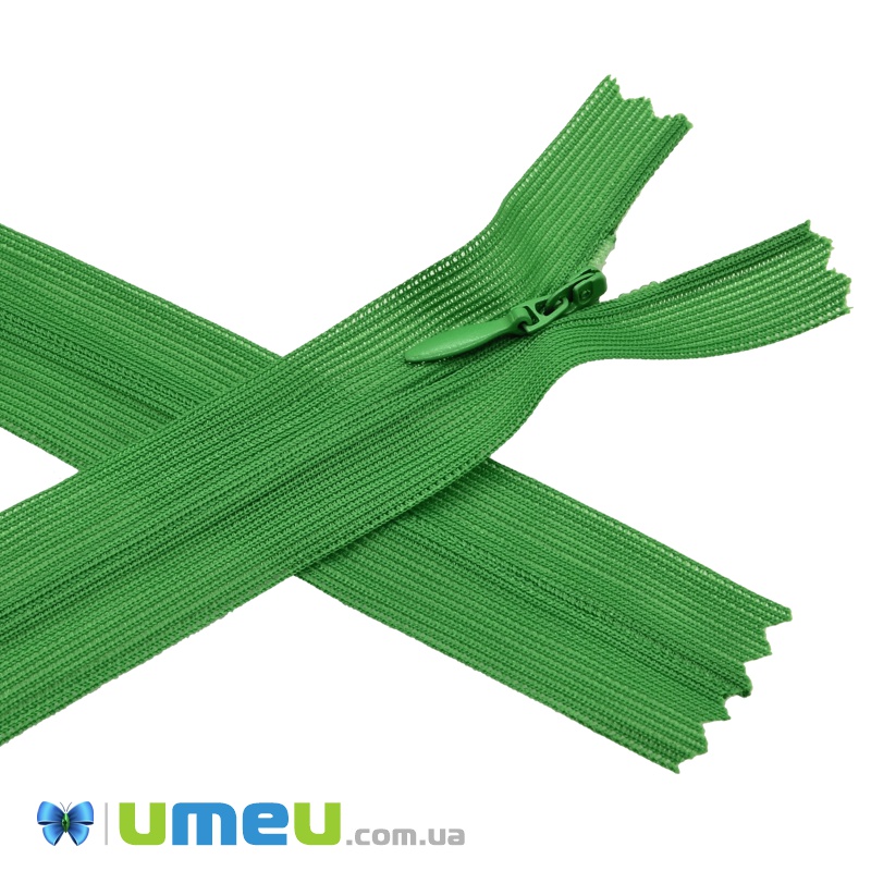 Блискавка (змійка) потайна нероз'ємна, 50 см, Тип 3, Зелена (ZIP-037406) / 1 шт