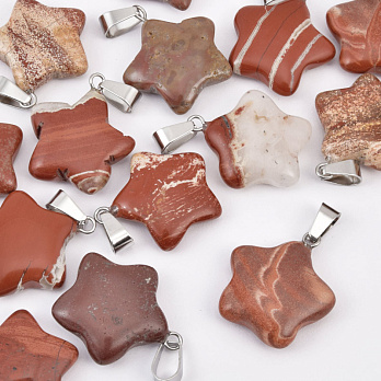 Підвіска Зірка, Натур. камінь Яшма червона, 23х20 мм (POD-037482) / 1 шт