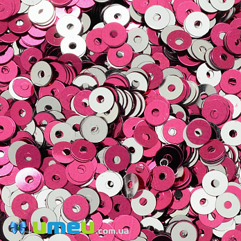 Паєтки Індія круглі плоскі, 4 мм, Серебристо-малинові (PAI-037627) /