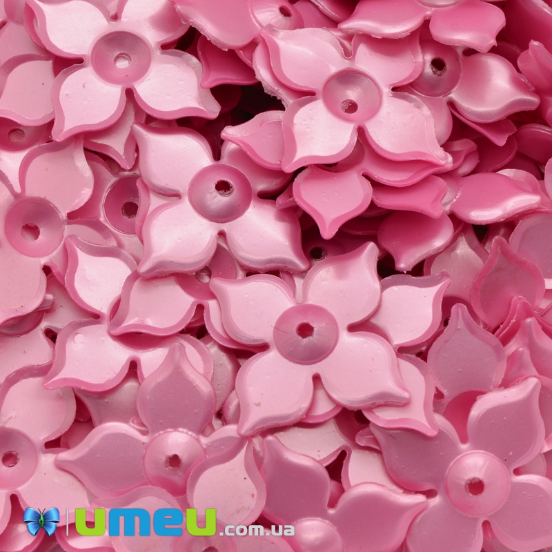 Паєтки Індія квіти, 18х25 мм, Рожеві (PAI-037844) / 1 уп (5 г)