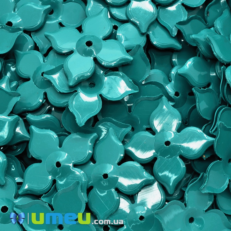 Паєтки Індія квіти, 18х25 мм, Бірюзові (PAI-037845) / 1 уп (5 г)
