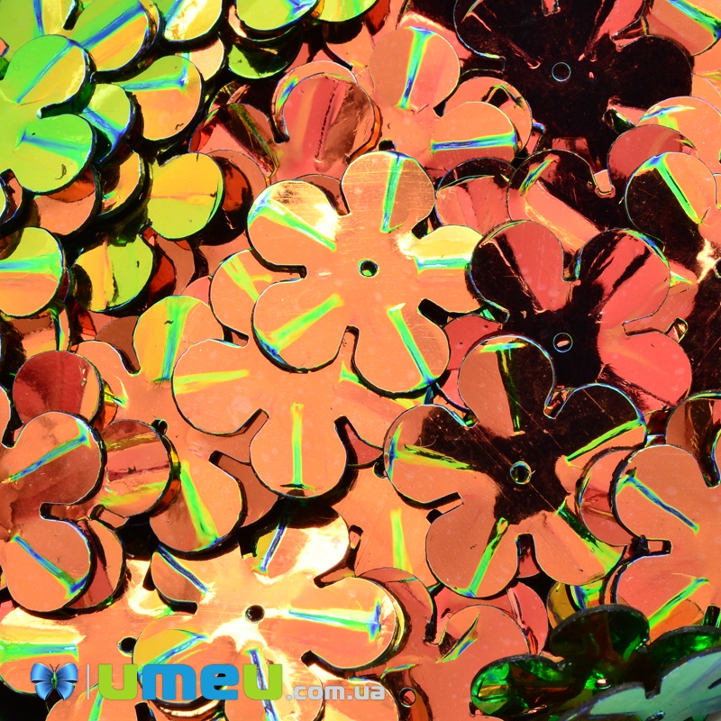 Паєтки Індія квіти, 20 мм, оранжево-зелені АВ (PAI-037849) / 1 уп (5 г)