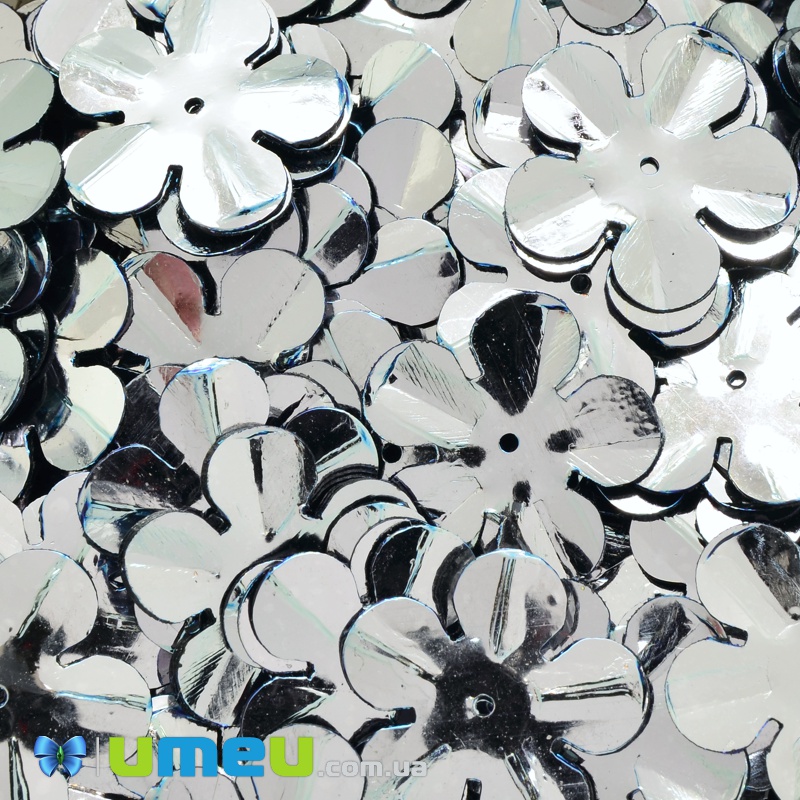 Паєтки Індія квіти, 20 мм, Сріблясті (PAI-037851) / 1 уп (5 г)
